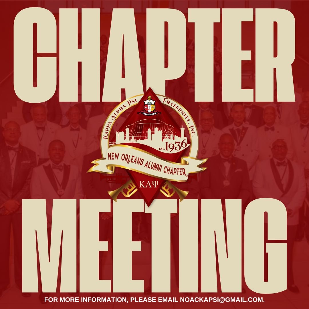 Join the brothers of the New Orleans Alumni Chapter for our Monthly Chapter Meeting — a time to connect, conduct business, and strengthen the bond of brotherhood. Together, we review chapter updates, plan upcoming events, and continue the work of achievement in every field of human endeavor.